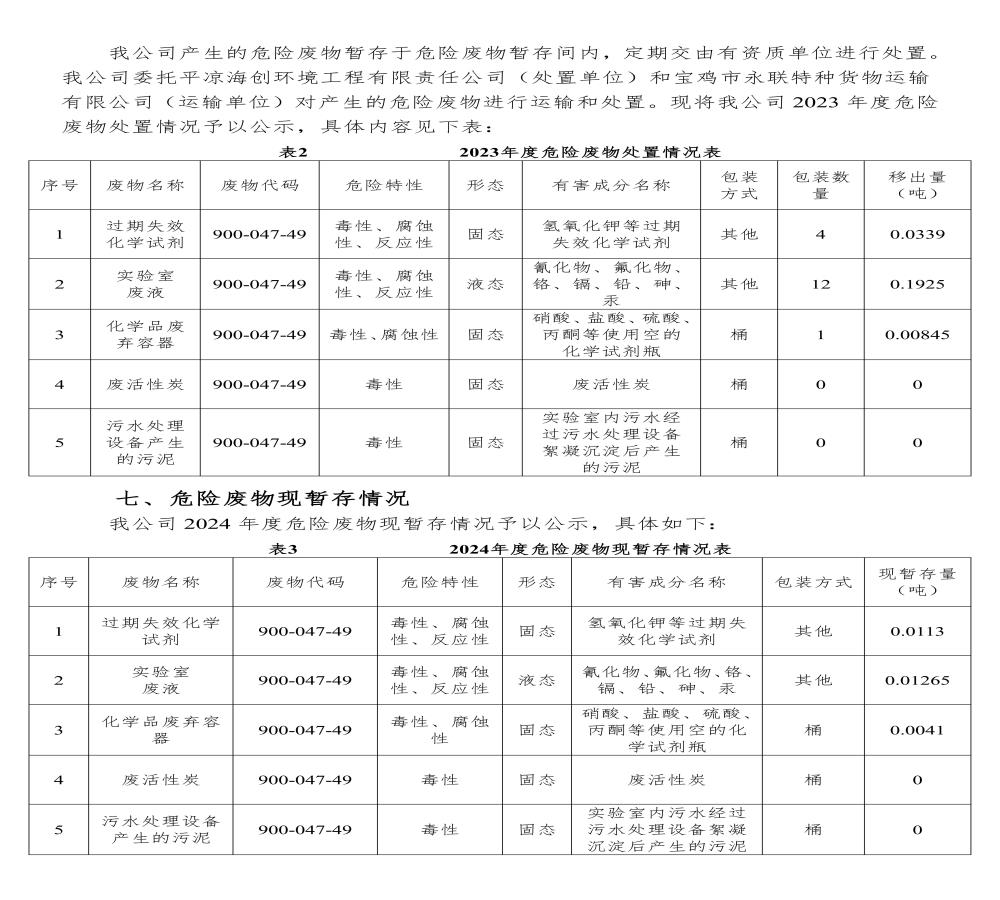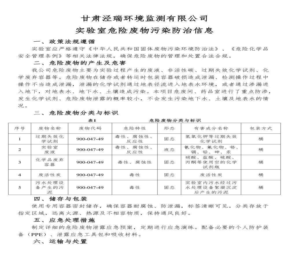 甘肅涇瑞環(huán)境監(jiān)測有限公司實驗室危險廢物污染防治信息