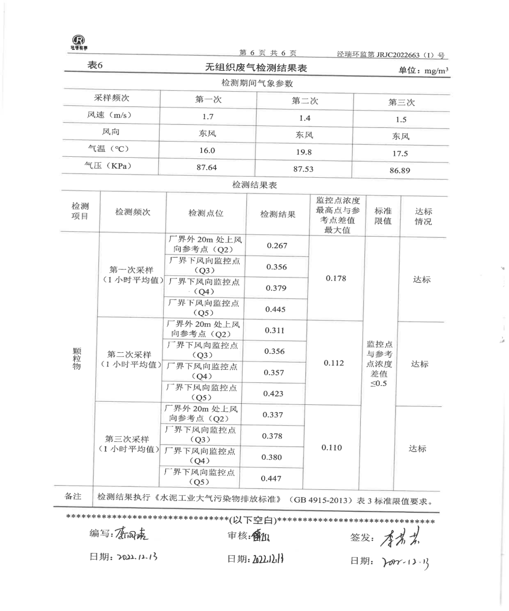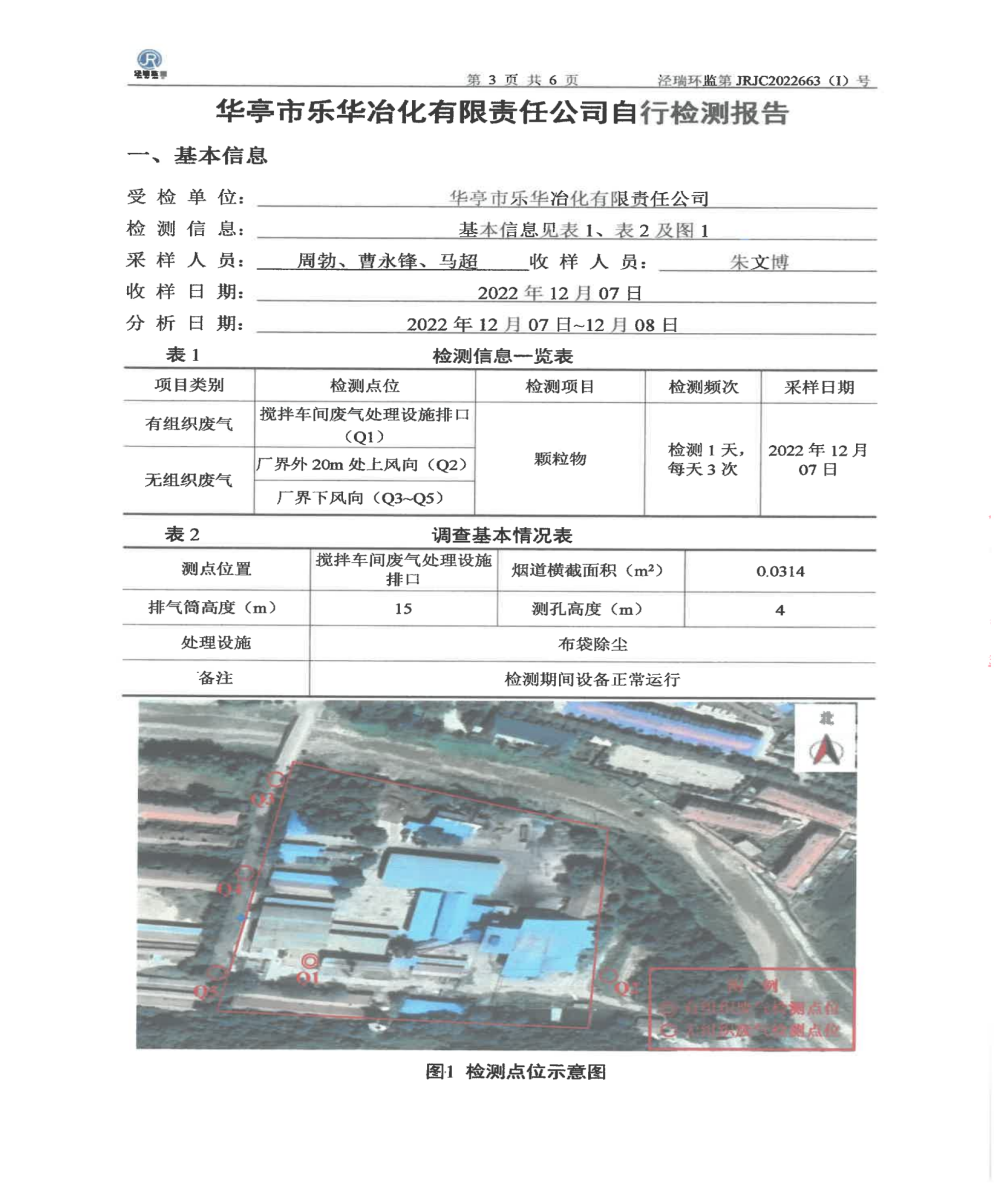 華亭市樂華冶化有限責任公司自行檢測報告